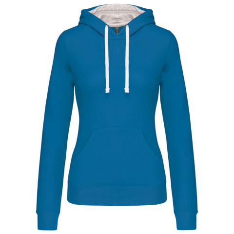 Tedd fel kérdésed a(z) KARIBAN Női pulóver kontrasztos bélésű kapucnival, Kariban KA465, Tropical Blue/White-M termékről!