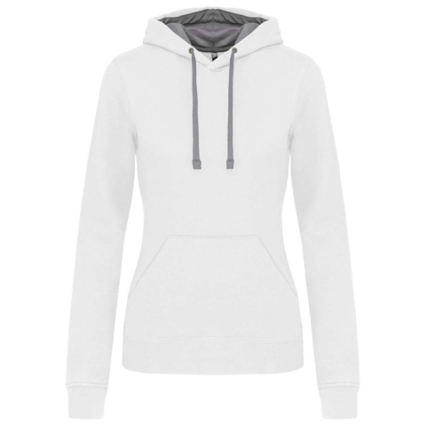 1 kép KARIBAN Női pulóver kontrasztos bélésű kapucnival, Kariban KA465, White/Fine Grey-L