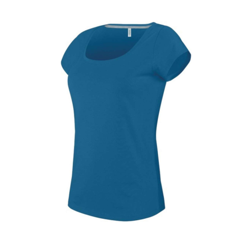 1 kép KARIBAN Női rövid ujjú, csónak nyakú pamut póló, Kariban KA384, Tropical Blue-L