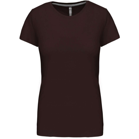 1 kép KARIBAN Női rövid ujjú környakas pamut póló, Kariban KA380, Chocolate-S