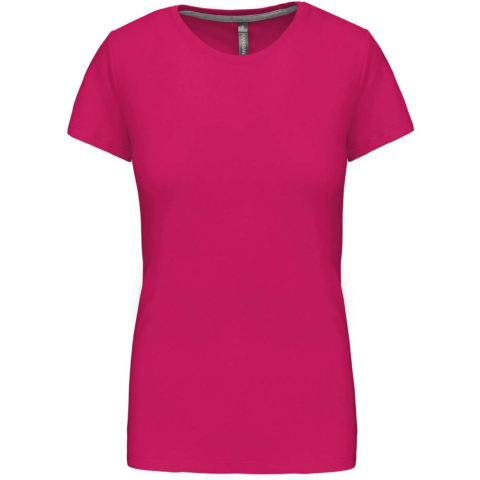 1 kép KARIBAN Női rövid ujjú környakas pamut póló, Kariban KA380, Fuchsia-M