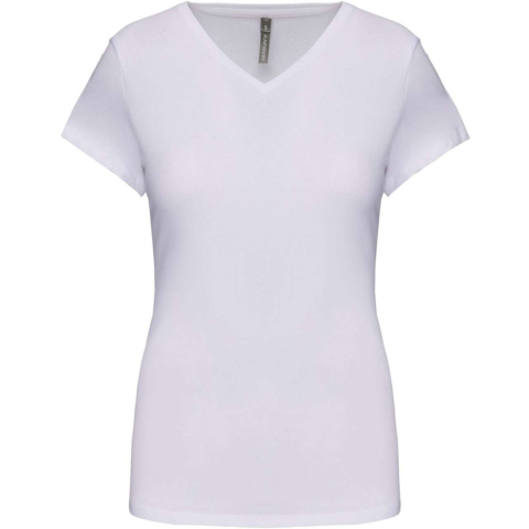 1 kép KARIBAN Női rövid ujjú V-nyakú sztreccs póló, Kariban KA3015, White-XL