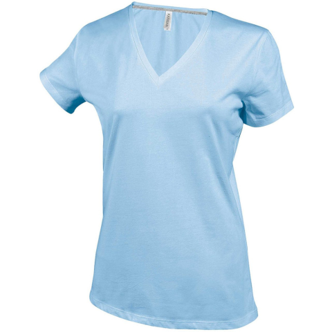 1 kép KARIBAN Női V-nyakú rövid ujjú pamut póló, Kariban KA381, Sky Blue-XL