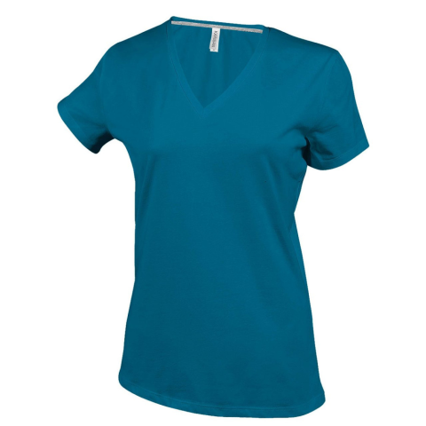 1 kép KARIBAN Női V-nyakú rövid ujjú pamut póló, Kariban KA381, Tropical Blue-3XL