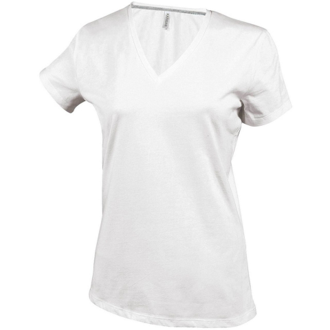 1 kép KARIBAN Női V-nyakú rövid ujjú pamut póló, Kariban KA381, White-2XL