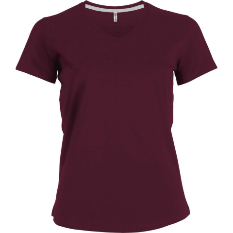 1 kép KARIBAN Női V-nyakú rövid ujjú pamut póló, Kariban KA381, Wine-L