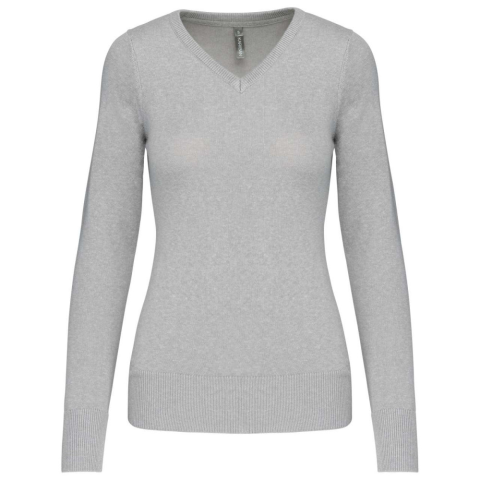 1 kép KARIBAN Női V-nyakú testhezálló pulóver, Kariban KA966, Grey Melange-S