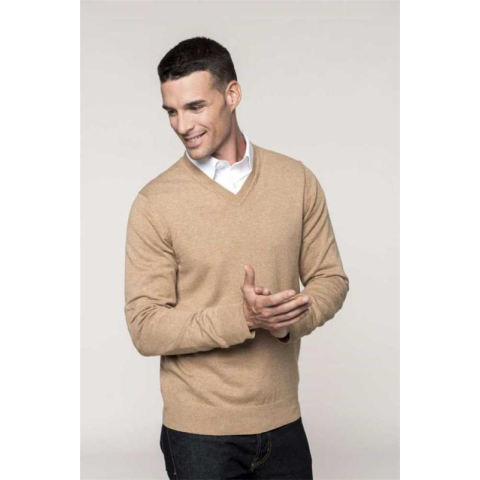 1 kép KARIBAN Pulóver Kariban prémium v-nyakú férfi hosszú ujjú férfi, camel heather, XL
