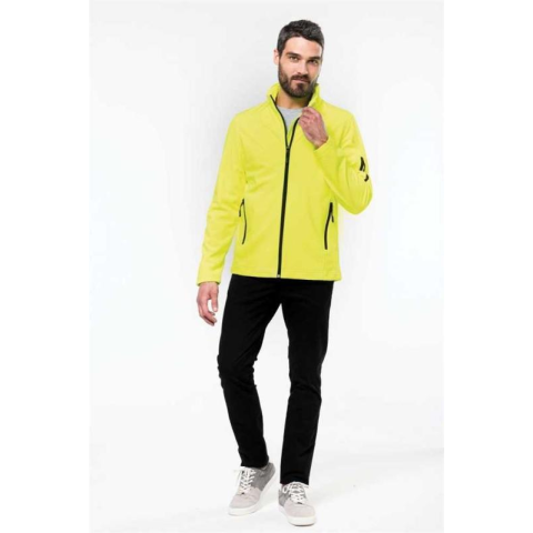 95% polyester/5% elastanePerformance membrane mid layer and micro fleece thermal inner layerSoftshell triple-layer bonded fabric3000 gsm/24h breathable and 8000 mm water-resistantZip through front2 zipped side pockets1 zipped left sleeve pocket