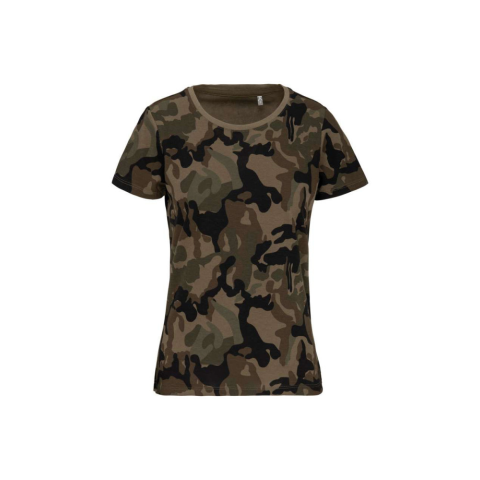 1 kép KARIBAN terepmintás Női póló környakas, rövid ujjú KA3031, Olive Camouflage-XS