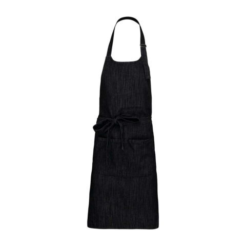 1 kép KARIBAN Uniszex duplazsebes hosszú kötény, állítható nyakpánttal, Kariban KA890, Black Denim-U