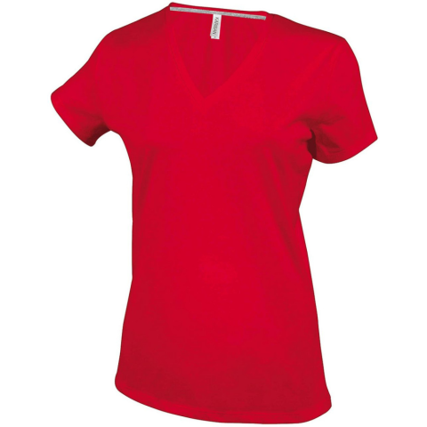 1 kép KARIBAN V-nyakú rövid ujjú Női pamut póló KA381, Red-S
