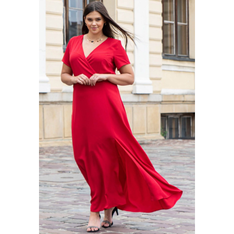 Molett Ruha Model 168953 Karko MM-168953. Színe: PirosA Fiomena ruhát Lengyelországban tervezték és varrták kiváló minőségű anyagból, amely lehetővé teszi a bőr számára a légzést. A tervezők minden részletre odafigyeltek, hogy a ruha az XL-es vagy annál nagyobb méretet viselő plus size hölgyek számára is vonzó legyen. A V alakú, borítékolt nyakkivágás optikailag karcsúsítja a nyakat és a felsőtestet. Ezenkívül tökéle