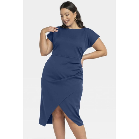 Női Molett Ruha Karko MM-197774. Színe: Sötétkék A Tara elegáns ruha a klasszikus és a finom érzéki érintés kombinációja. Az oldalán lévő jellegzetes gyűrődés egyedi bájt kölcsönöz neki, miközben hangsúlyozza a női eleganciát. A deréknál levágott rész formálja a sziluettet, míg az elöl lévő érzéki kivágás finom pikantériát kölcsönöz. Ez a ruha magabiztosságot és bájt sugároz, számos alkalomra tökéletes v