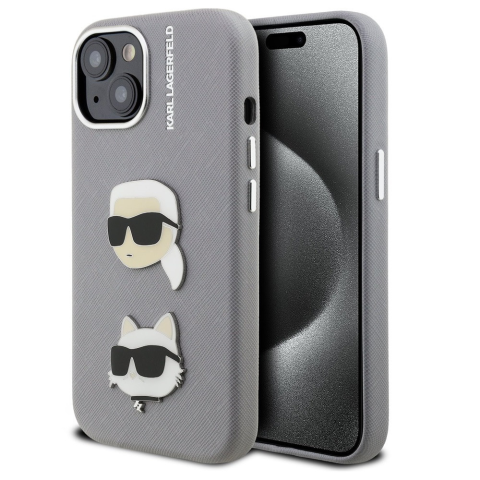 1 kép Karl Lagerfeld Grained PU K&CH Heads iPhone 15 hátlap tok, szürke