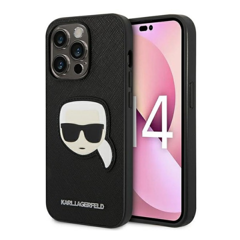 1 kép Karl Lagerfeld Head Saffiano bőr hátlap tok Apple iPhone 14 Pro, fekete
