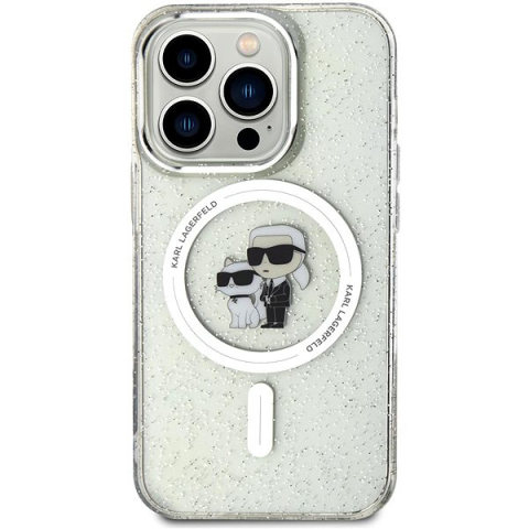 1 kép Karl Lagerfeld IML Glitter Karl and Choupette iPhone 15 Pro MagSafe átlátszó tok
