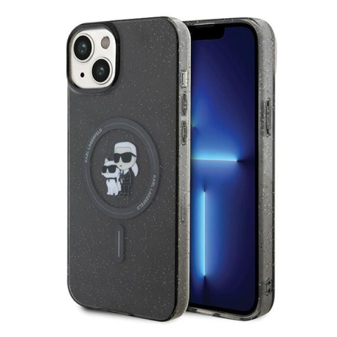 1 kép Karl Lagerfeld Karl&Choupette Glitter MagSafe Apple iPhone 15 hátlap tok, fekete