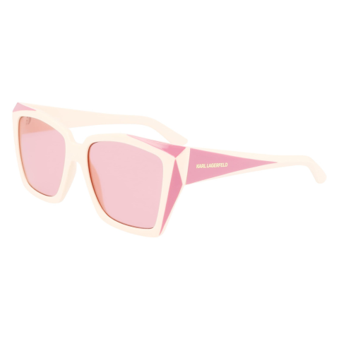 A(z) KARL LAGERFELD napszemüveg Női viseletre ajánlott. A Műanyag keret kényelmet és tartósságot biztosít, a(z) Fehér lencsék pedig komfortos látásélményt kínálnak. Ez a modell Kategória 2 - átlagos napsütéshez lencsékkel van ellátva, amelyek alkalmaz