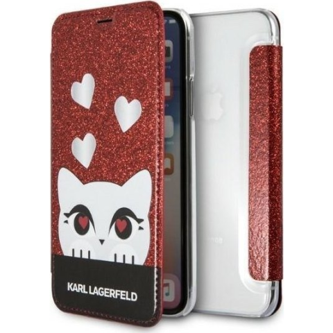 Karl Lagerfeld KLFLBKPXVDCRE iPhone X/XS Piros Valentin Könyvtok (KLD1360)