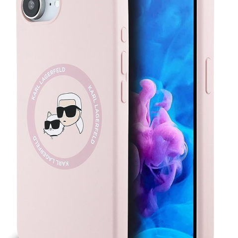 1 kép Karl Lagerfeld Liquid K and CH Heads iPhone 16e rózsaszín szilikon MagSafe tok