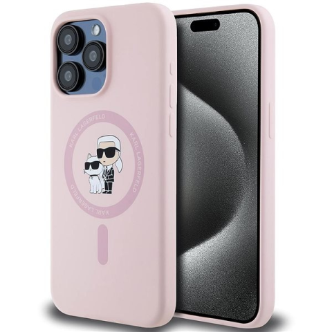 Karl Lagerfeld Liquid Silicone Karl and Choupette MagSafe iPhone 15 Pro Pink tok