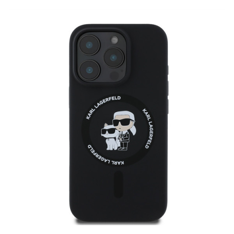 Karl Lagerfeld Liquid Silicone Karl and Choupette MagSafe iPhone 16 Pro Black tok