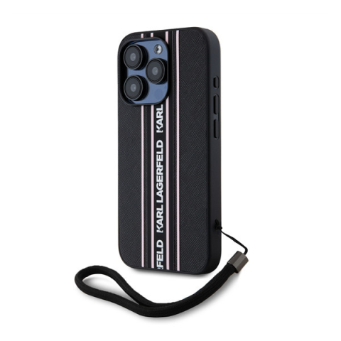 1 kép Karl Lagerfeld PU Saffiano Athleisure Apple iPhone 15 Pro hátlap tok csuklópánttal, rózsaszín