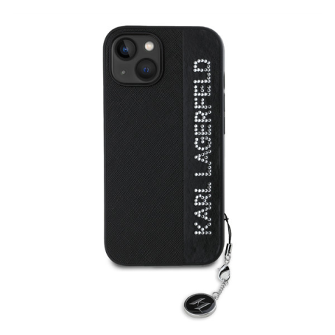 1 kép Karl Lagerfeld PU Saffiano Rhinestone Charm Apple iPhone 15 hátlap tok, fekete