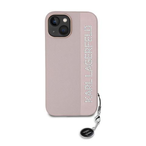 1 kép Karl Lagerfeld PU Saffiano Rhinestone Charm Apple iPhone 15 hátlap tok, rózsaszín