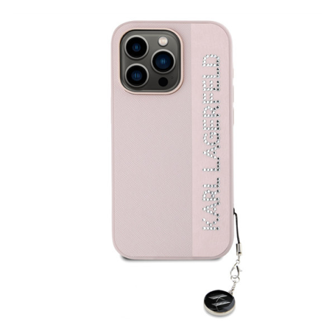 1 kép Karl Lagerfeld PU Saffiano Rhinestone Charm Apple iPhone 15 Pro hátlap tok, rózsaszín