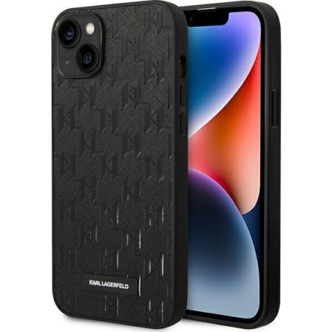1 kép Karl Lagerfeld Saffiano Mono Metal Apple iPhone 14 Plus hátlap tok, fekete (KLD1132)