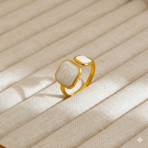 Amikor egy nő ékszert visel, az nem csupán egy kiegészítő — hanem egy érzés. Egy finom, kimondatlan üzenet a világnak. Az Abstract Square aranyozott gyűrű a modern design és a klasszikus elegancia különleges ötvözete. A központi, gyö