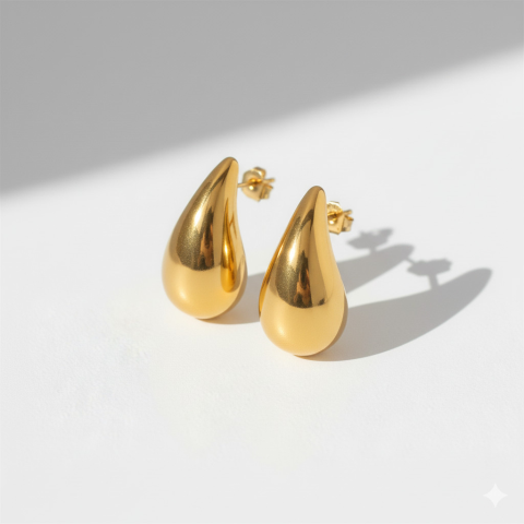 Ikonikus, aranyozott könnycsepp forma a minimalista kollekciónk egyik legszebb darabja. Szoborszerű formája tökéletesen tükrözi a fényt, így egyszerre modern és klasszikus. Tökéletes kiegészítő egy letisztult, monokróm öltözékhez, de egy elegáns esti