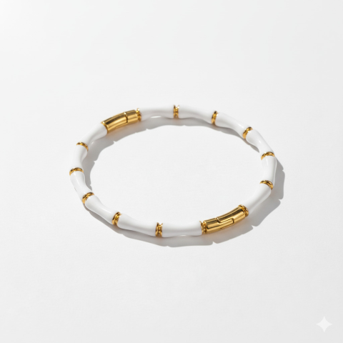 Amikor egy nő ékszert visel, az nem csupán egy kiegészítő — hanem egy érzés. Egy finom, kimondatlan üzenet a világnak. A Bambusz karkötő – aranyozott letisztult formavilága finom ritmusban váltakozó elemekkel hoz létre harmonikus megjel