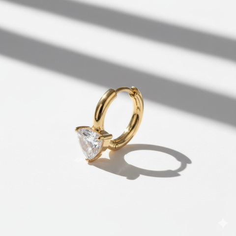 Amikor egy nő ékszert visel, az nem csupán egy kiegészítő — hanem egy érzés. Egy finom, kimondatlan üzenet a világnak. A háromszög alakú cirkónia kővel díszített fülbevaló a romantika és a nőiesség tökéletes kifejezője. Az aranyozott