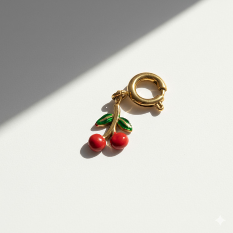 Amikor egy nő ékszert visel, az nem csupán egy kiegészítő — hanem egy érzés. Egy finom, kimondatlan üzenet a világnak. A Cseresznye charm friss, vidám megjelenésével azonnal magára vonja a tekintetet. A két apró, élénk tónusú gyümölcs é