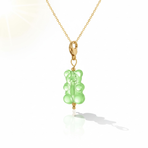 1 kép KÁRPÁTHY ékszer DIY Gumimaci nyaklánc - világoszöld, aranyozott
