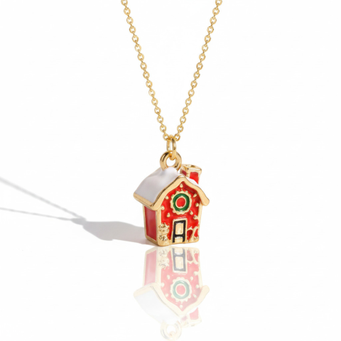 1 kép KÁRPÁTHY ékszer DIY Havas házikó nyaklánc - aranyozott, zománcozott