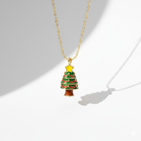 1 kép KÁRPÁTHY ékszer DIY Karácsonyfa nyaklánc - aranyozott, zománcozott