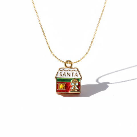 1 kép KÁRPÁTHY ékszer DIY Mikulás háza nyaklánc - aranyozott, zománcozott