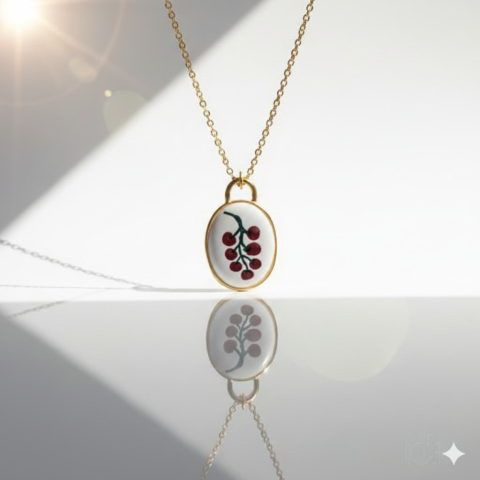 1 kép KÁRPÁTHY ékszer DIY Paradicsom olajfestmény nyaklánc, aranyozott