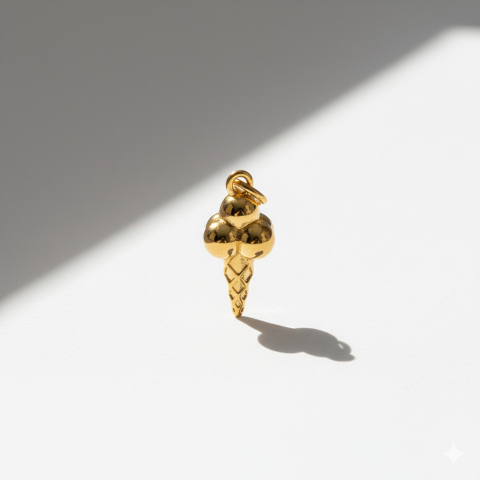 Amikor egy nő ékszert visel, az nem csupán egy kiegészítő — hanem egy érzés. Egy finom, kimondatlan üzenet a világnak. A Fagyi charm a nyári pillanatok könnyedségét idézi: a domború gombócok és a finoman texturált tölcsér részletes mint