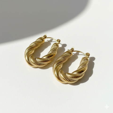 Amikor egy nő ékszert visel, az nem csupán egy kiegészítő — hanem egy érzés. Egy finom, kimondatlan üzenet a világnak. A tekert, texturált felületű aranyozott formájú fülbevaló egyszerre klasszikus és különleges. A fény a fonott mint