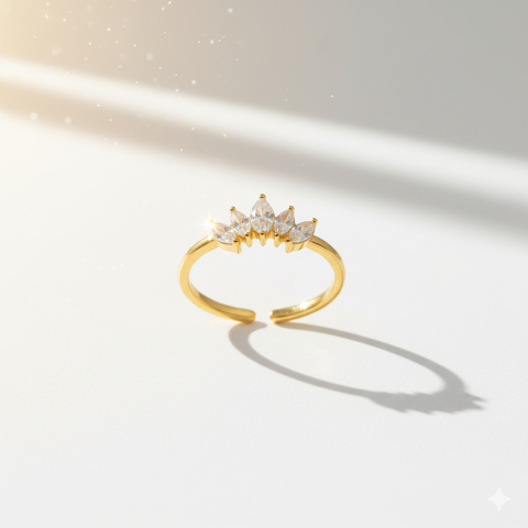 Amikor egy nő ékszert visel, az nem csupán egy kiegészítő — hanem egy érzés. Egy finom, kimondatlan üzenet a világnak. A gyűrű középpontjában öt, finoman metszett cirkónia kő sorakozik egymás mellett, liliomszirmokra emlékeztető formába