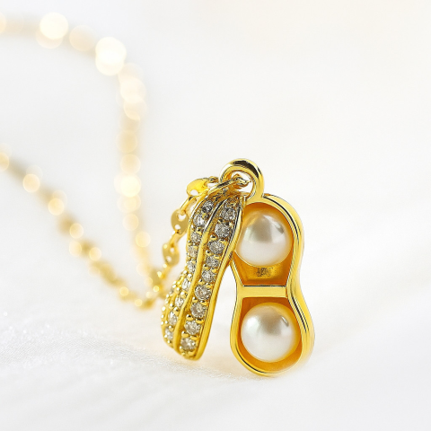 Amikor egy nő ékszert visel, az nem csupán egy kiegészítő — hanem egy érzés. Egy finom, kimondatlan üzenet a világnak. Játékos, mégis elegáns nyaklánc földimogyoró formájú medállal, amelyet apró, ragyogó cirkónia kövek díszítenek.