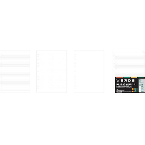 Papír – csere utántöltő KARIS A5 tartóhoz, 90 lap, három típusra osztva (30 vonalas 8 mm, 30 pontozott, 30 sima), írásra, rajzolásra és tervezésre alkalmas, minőségi papír, gyors és egyszerű csere, ideális kiegészítője a Verde tartóknak A Verde KARTON P+P kártyatömbökhöz való cserepatron 30 lap négyzet alakú, 30 lap vonalas és 30 lap üres papírt tartalmaz. Ez a tökéletes megoldás mindenki számára, hiszen a füzetben lehet rajzolni, ír