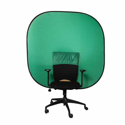 Zöld Chorma-key (bluebox) székre tehető szögletes háttér - 150*200 cm átmérő Tiszta, sima textura nélküli poliészter székre tehető vlog, videó háttér. Tökéletes un. bluebox effekt (chroma-key) eléréséhez, azaz háttér kicseréléséhez vlog, videók, konferen