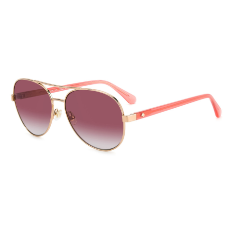 A(z) KATE SPADE napszemüveg Női viseletre ajánlott. A Rozsdamentes acél keret tartós és kényelmes viseletet biztosít, a(z) Rózsaszín lencsék pedig stílusos megjelenést nyújtanak. Méretei: Lencse szélessége: 58 mm, híd szélessége: 15 mm, szár hossza