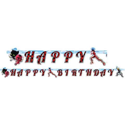 Miraculous Ladybug Happy Birthday felirat Mérete: 200*15 cm Anyaga: papír